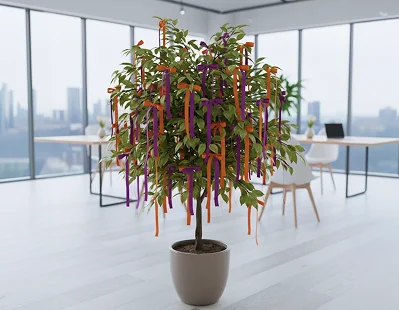 Поставьте в центре офиса растение раскидистое. Пусть Красавицы привяжут к нему ленты-записки со своими желаниями рабочими. А молодцы пусть обязуются за месяц те желания исполнить.