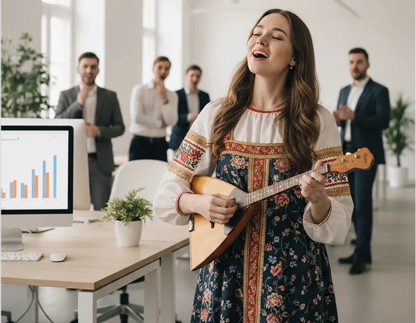 Красавицы исполняют частушки про подвиги богатырей — рабочие, смешные и слегка героические. Богатыри могут ответить рифмой или благодарственным поклоном.